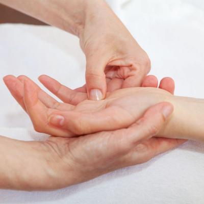 Similar a la podal, pero aplicando presión en los puntos reflejos de las manos.